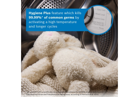 • Spin Drying Efficiency Class: B – balances drying power and fabric care