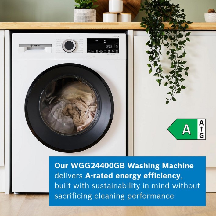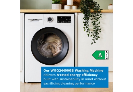 The Bosch WGG24400GB washing machine delivers exceptional performance with a generous 9kg drum capacity and a maximum spin speed of 1400rpm. Designed with convenience and sustainability in mind, this model is part of Bosch’s A-rated appliances, making it a smart choice for energy-conscious households. Whether you're managing heavy weekly loads or delicate garments, the machine offers flexible, powerful performance with enhanced efficiency and reduced noise.