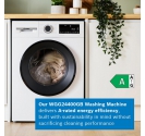 With customisable wash optimisation settings including Easy Ironing, Rinse Plus, Spin Speed Reduction, and Temperature Selection, the WGG24400GB adapts to your laundry needs. Programmes such as Super Quick 15/30, Delicates, and Woollens give this machine the versatility to handle every fabric type. An intuitive LED display and reload function enhance control and usability during every cycle.