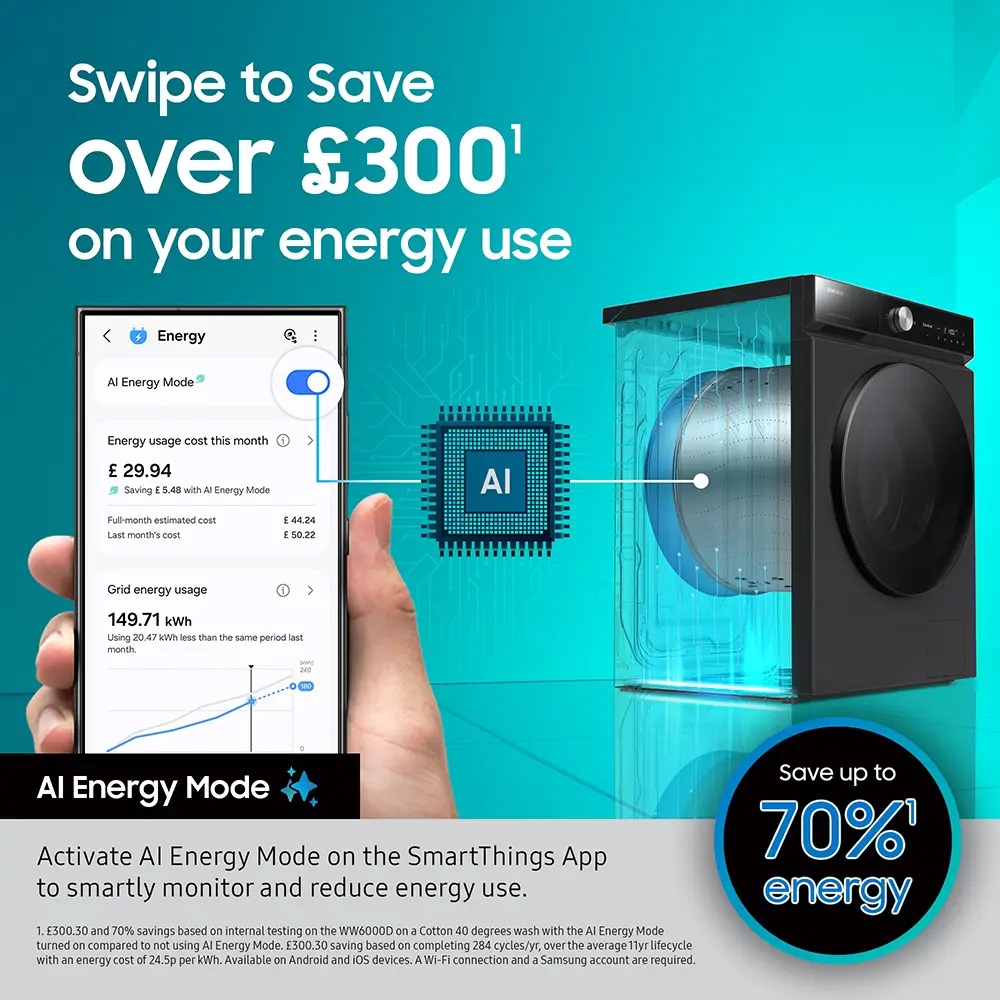 Samsung WW11DG6B25LBU1 Series 6 AI Energy Washing Machine 11kg 1400 Spin Black A Rated