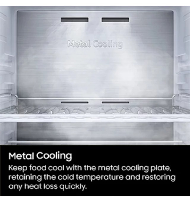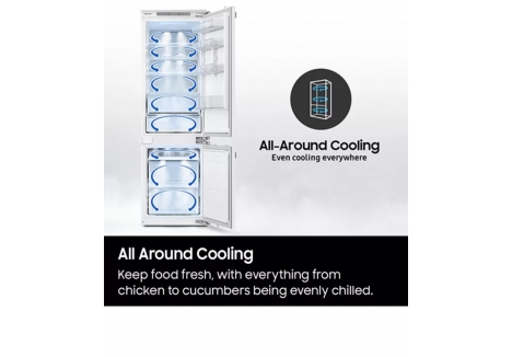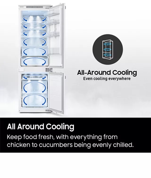 The integrated All-Around Cooling system circulates cold air evenly throughout the fridge, keeping your food fresher for longer. It prevents hotspots and ensures a stable temperature across every shelf and compartment.