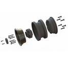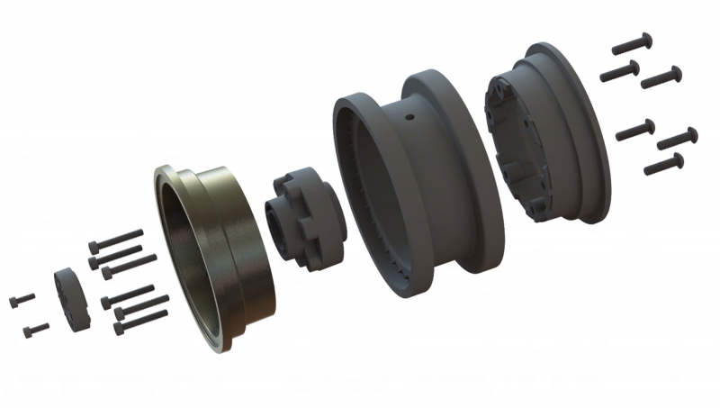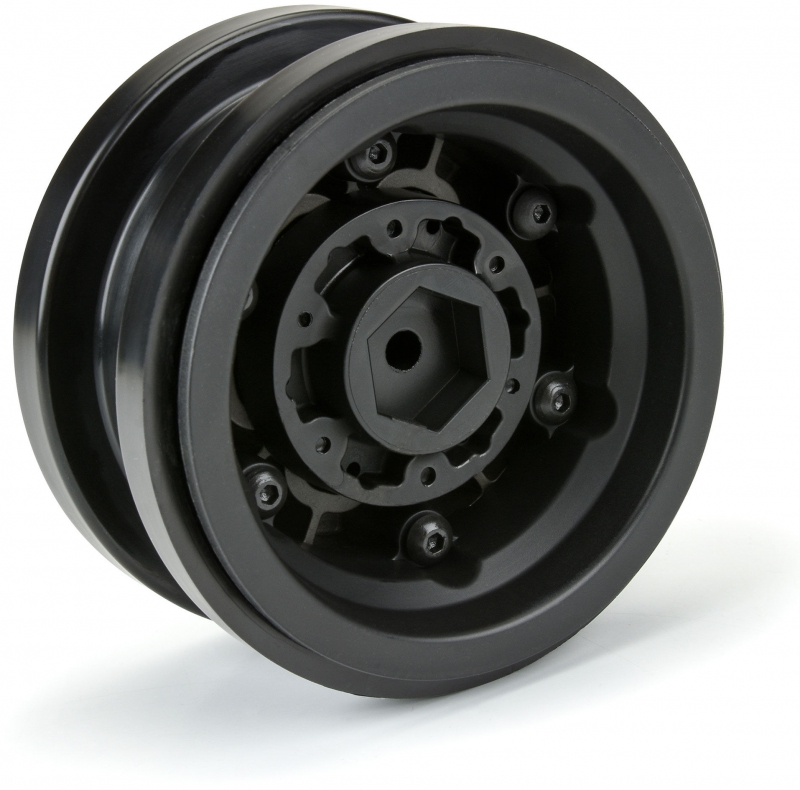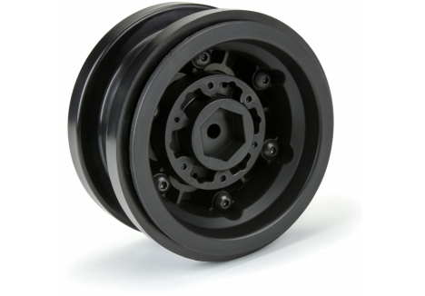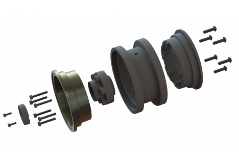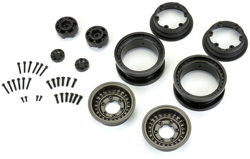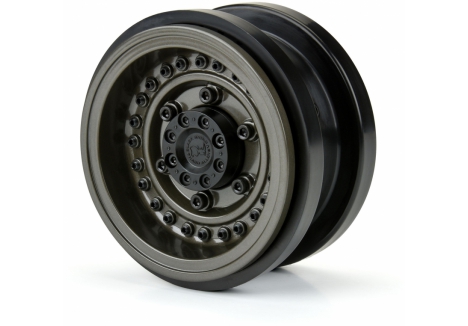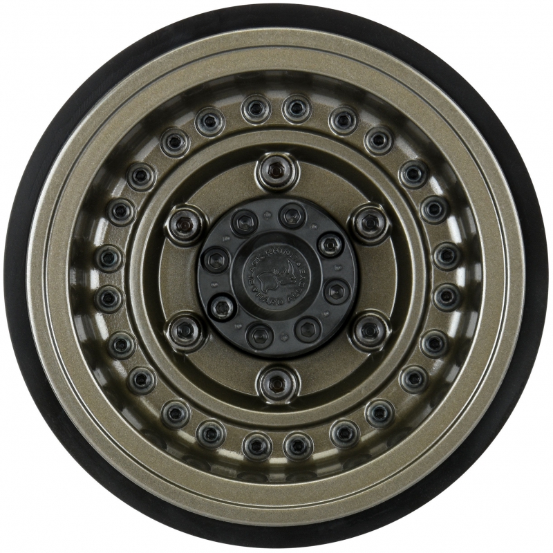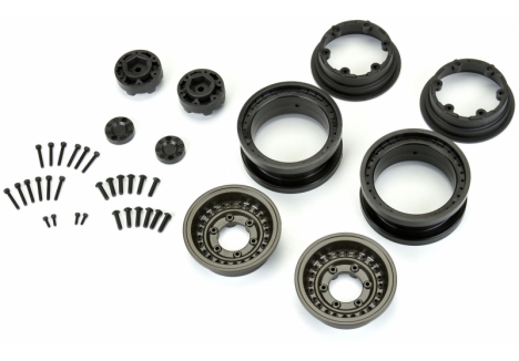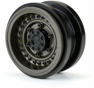 This is a pair of Black Rhino Armory 2.9" Wheels for the SCX6™. Introducing an innovative wheel solution for the Axial® SCX6™! Officially licensed by Black Rhino Wheels, the Armory is a rugged, military-style wheel perfect for the off-road enthusiast. It features a gunmetal cast aluminum face with 24 scale setscrews pre-installed into the wheel face. All the details of the 1:1 wheel have been captured for the ultimate scale look, including the Black Rhino logo molded into the Hub Cab.