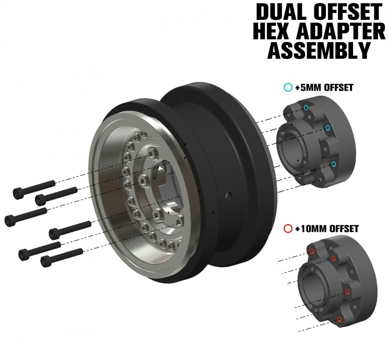 This Internal bead-loc style wheel can be configured with 2 different offsets using an innovative dual-offset hex adapter. Clock the hex fully seated into the back of the wheel for a +5mm offset, or use the alternate set of holes to push the wheel further outwards for a +10mm offset, giving you more stability and clearance for wide tires.