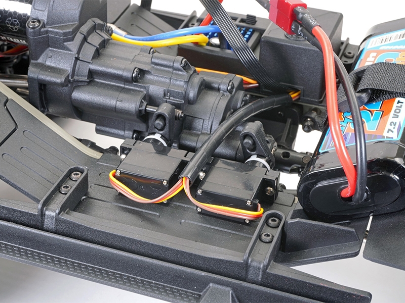 Moulded inner fenders fill each wheel well, while oil filled, adjustable aluminium shock absorbers provide exceptional rough track handling.