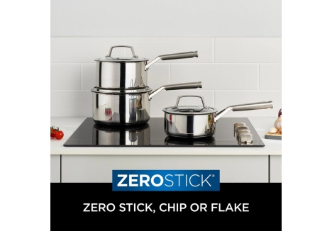- Product Type – Ninja ZEROSTICK pan set C63000UK, Ninja stainless steel 3-piece pan set, Ninja non-stick saucepan set silver, Ninja metal utensil safe pans dishwasher safe, Ninja ZEROSTICK saucepans for induction hobs