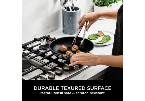 - Surface Texture – Textured cooking surface; interlocks with coating for enhanced non-stick performance