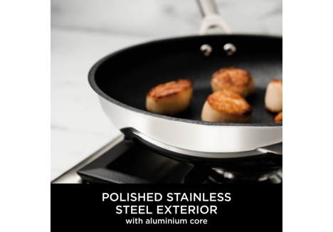 - Body Material – Polished stainless steel with aluminium core; delivers even heat distribution and high-heat searing