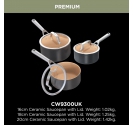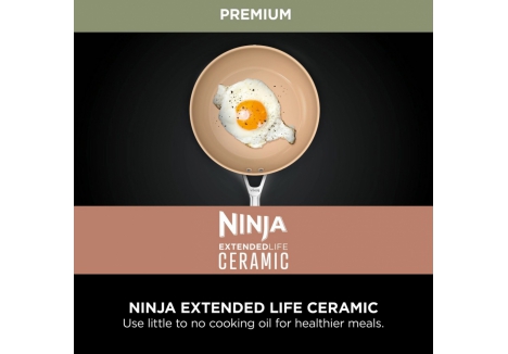 - Product Type: Ninja Extended Life Ceramic saucepan set CW93000UK, Ninja ceramic non-stick 3-piece pan set, Ninja cookware set terracotta and grey, Ninja non-stick ceramic saucepans dishwasher safe, Ninja saucepan set for all hob types
