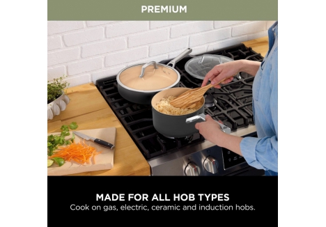 Yes, the Ninja saucepan set for all hob types is compatible with gas, electric, ceramic, and induction cooktops. This makes it a versatile choice for any kitchen setup. The flat base ensures stable contact with the hob surface, while the ergonomic stainless steel handles provide a secure grip when transferring pans between hob and oven. Whether you're boiling pasta or simmering sauces, this cookware adapts to your cooking style with ease.