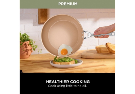The Ninja Extended Life Ceramic cookware set is engineered for those who value performance and health. With its smooth ceramic surface, food releases effortlessly without the need for excess oil. This makes it ideal for preparing low-fat meals such as stir-fries, curries, and stews. The hard-anodised aluminium base ensures quick and even heating, reducing cooking time and improving texture and flavour. Each pan includes a glass lid, allowing you to check progress without lifting the lid and losing heat or moisture.