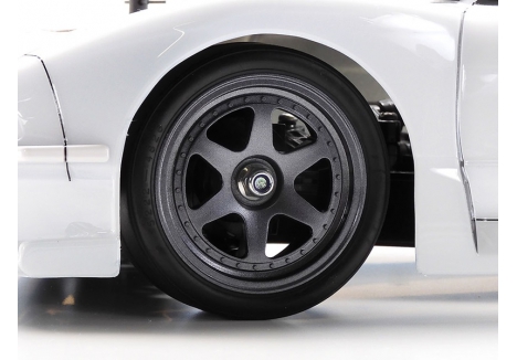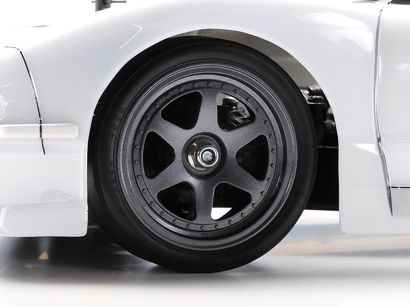 The Tamiya RC car with brake disc hubs and ABS parts stands out for its attention to detail. The wheel hubs are styled to resemble brake discs, adding a layer of authenticity to the visual design. ABS plastic components such as the front bumper canards, side mirrors, and rear wing are separately molded, enhancing both durability and realism. These features not only improve the aesthetic appeal but also contribute to the structural integrity of the model during assembly and operation.