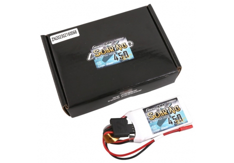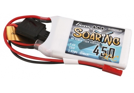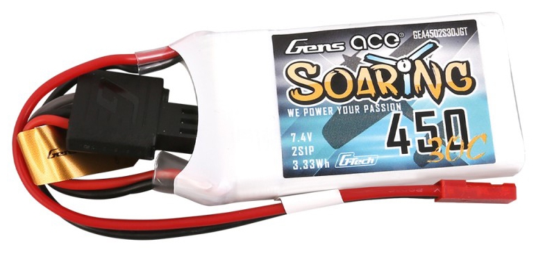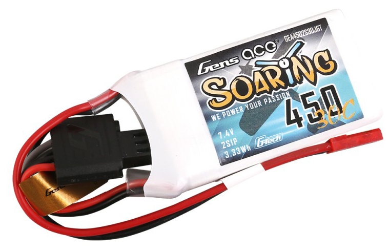 Gens ace Soaring 450mAh 7.4V 30C 2S1P Lipo Battery is a great fit for all smaller Heli´s and Planes like the Blade 130X and Indoor Foam Planes, he delivers consistent Power to all these kind of models and is a long time hot seller in the Gens ace Line up.