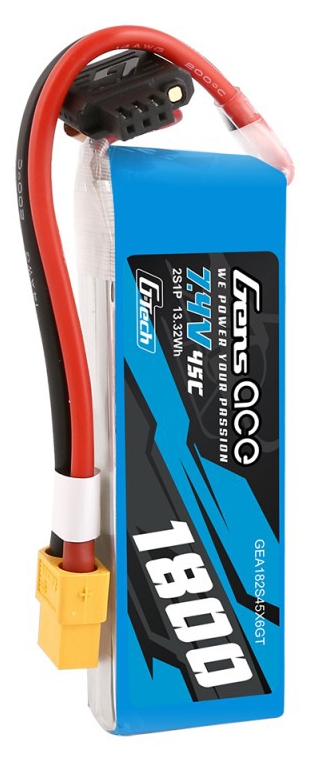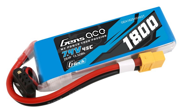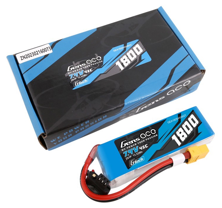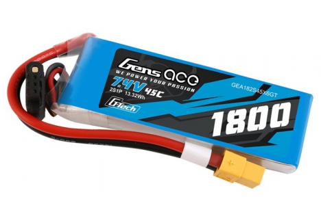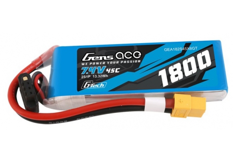 Gens ace 1800mAh 7.4V 45C 2S1P Lipo Battery Pack with XT60 Plug is one of the top rank battery corporations with deep research and manufacturing on NIMH, LI-PO, LI-FE by the effort of 200 professional engineers and technicians with 20 years exquisite battery technology. The Gens ace brand holds the traditional concept of "excellent quality", "Optimization" & "Priority" on Sales & Services. All batteries are tailored for various scales of the RC Models such as electronic cars, aero planes, vessels and also other models, toys, electric tools, electric bikes, electric autos, digital products etc
