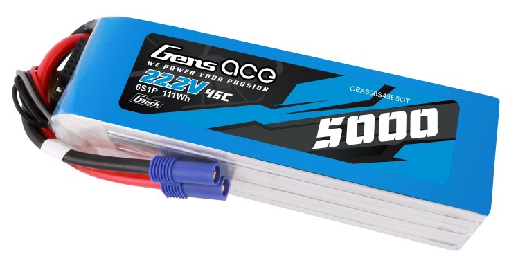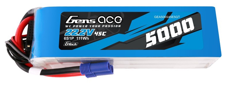 - (1) Gens Ace O-GT6S5000-45E5 6S HV 22.2V 5000mAh 45C Softcase LiPo Battery with EC5 Connector