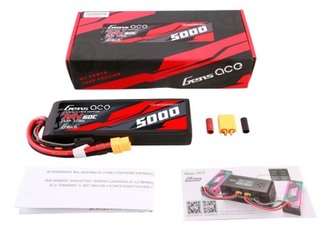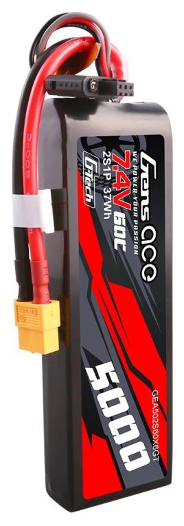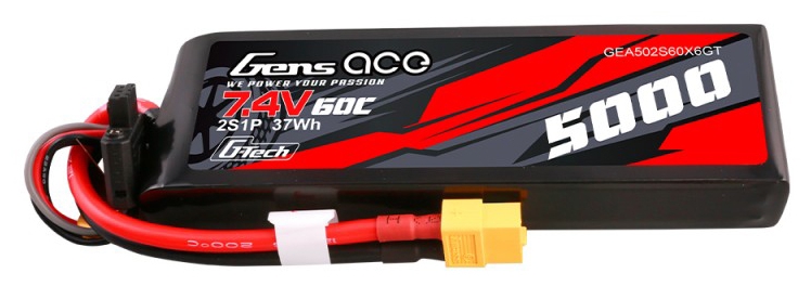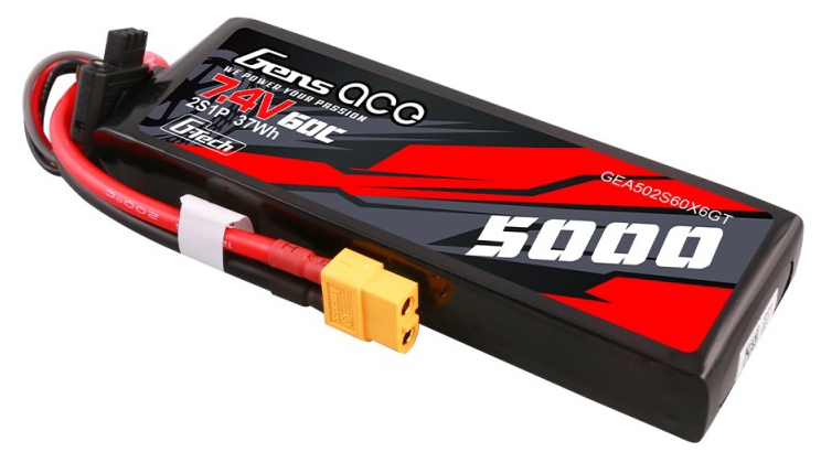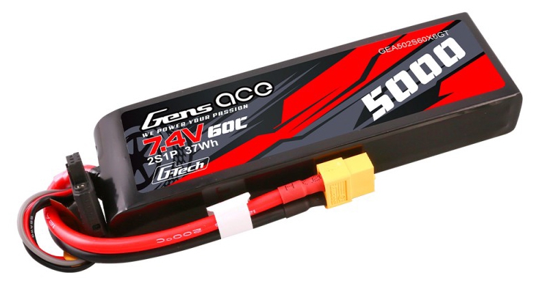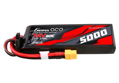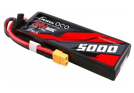 Gens ace G-Tech 5000mAh 7.4V 60C 2S1P Lipo battery pack has Remarkable stacking technology which enables single-cell capacities of 5000mAh. High discharge performance and high energy density, Gens ace 5000mAh 7.4V 50C 2S1P TRX Lipo Battery are suitable for 1/8, 1/10 RC car hobby models, etc.