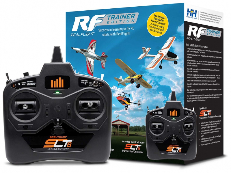 RealFlight Trainer Edition runs on a wide variety of PCs (Personal Computers) from low-cost laptops to "gaming" desktops running Windows® 10 or 11. It's available as software-only for use with a compatible USB-equipped transmitter including the Spektrum NX6 to NX20 - or the Spektrum InterLink® DX Simulator Controller, which connects directly to a USB port for easy plug-and-play use, and is modeled after Spektrum transmitters including all standard switch locations and functions so it works just like your favorite radio! It's also available with the Spektrum WS2000 USB Dongle that's compatible with Spektrum 2.4GHz DSMX/DSM2 equipped transmitters, like the DXS transmitter included with many of the most popular Ready-To-Fly (RTF) trainer aircraft, for wireless operation. It's even available with a Spektrum SLT6 transmitter that can also be used to fly ultra-micro/UMX (Ultra Micro eXtreme) aircraft equipped with receivers featuring Spektrum SLT FHSS technology!