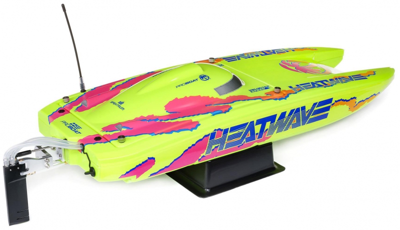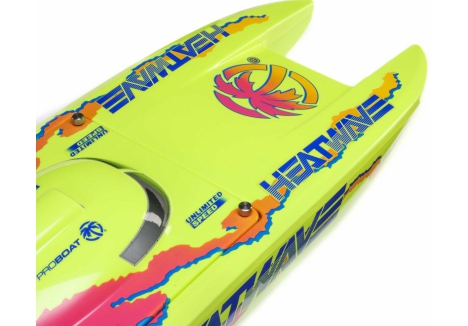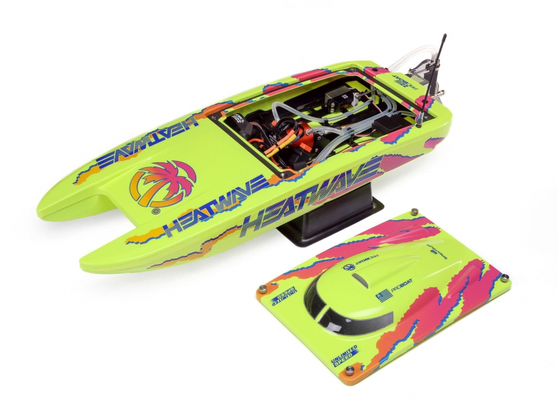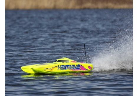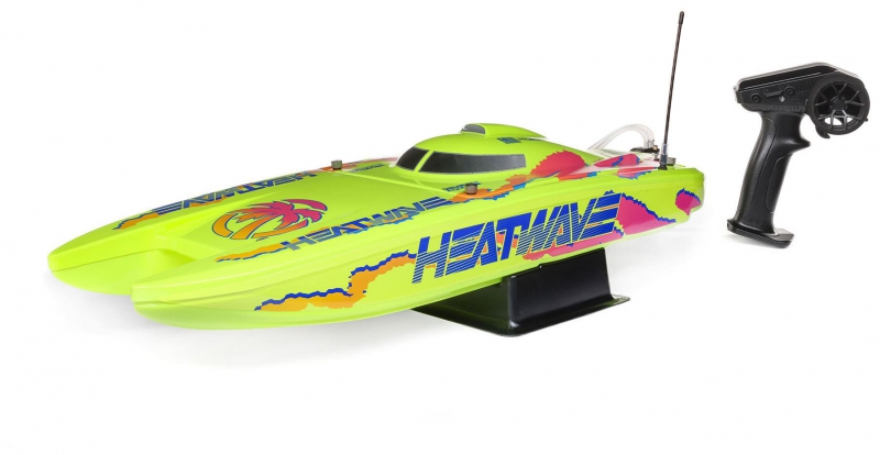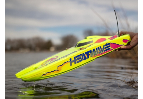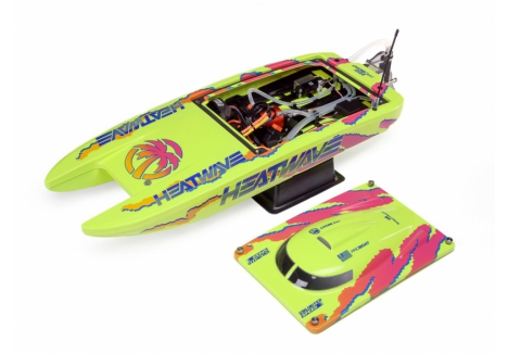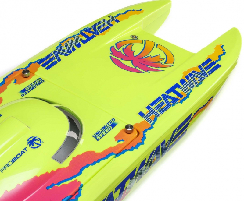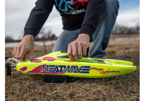 The Pro Boat catamaran with Heat Wave livery and Smart telemetry-ready electronics combines eye-catching design with advanced functionality. The Heat Wave graphics ensure visibility and style on the water, while the Smart ESC enables telemetry data when paired with compatible Spektrum gear. It’s a perfect blend of aesthetics and performance for serious RC boaters.