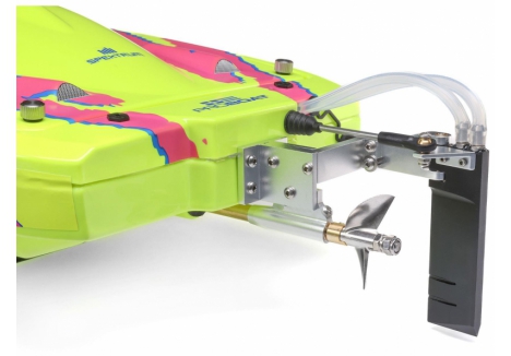 Other additions include the innovative Pro Boat SSL (Strap, Slide, Lock) battery tray that eliminates the hassle from locking down batteries in confined spaces. You can swap out packs in a snap - it takes only a matter of seconds. Bushing lubrication is simplified with a "grease and go" system that reduces this task to just three easy steps: remove the prop strut plug screw, pump in some grease, and seal it back up. The grease passes through the prop strut and stuffing tube into the bushing, right where it's needed.