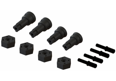 At the heart of the ARRMA MOJAVE GROM C-ARA2104T1 is a MEGA 380 28T brushed motor that delivers consistent torque and acceleration. Power is transferred through an enclosed metal gear drivetrain to all four wheels, ensuring high traction and durability. The updated V2 front and rear differentials feature metal internal gears and cross pins, designed to handle future power upgrades without compromise. This drivetrain setup allows the MOJAVE GROM to maintain control and speed across varied terrain, from loose gravel to compact dirt.