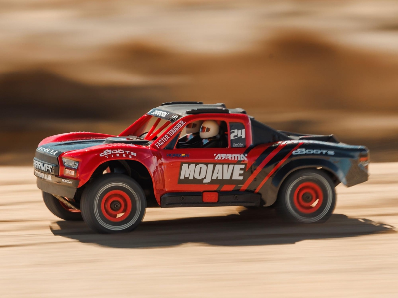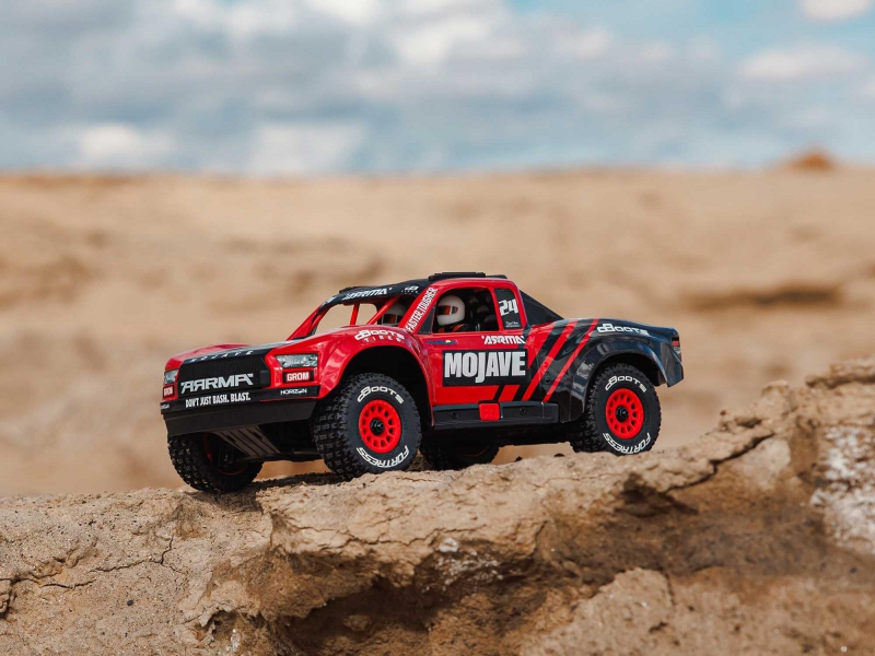 - Product Type: ARRMA MOJAVE GROM C-ARA2104T1 1/16 red desert truck RTR 4WD, ARRMA MOJAVE GROM C-ARA2104T1 remote control desert basher red, ARRMA MOJAVE GROM red with MEGA 380 motor and V2 metal differentials C-ARA2104T1, ARRMA 1/16 desert truck with clipless body and dBoots Fortress tyres red, ARRMA MOJAVE GROM red with waterproof electronics and oil-filled shocks