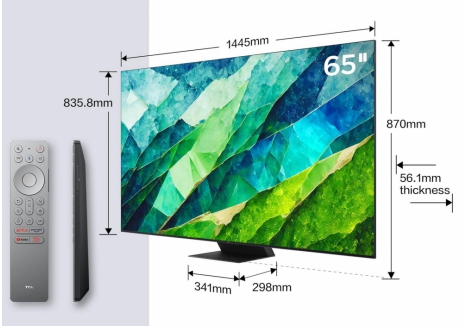 The TCL 65C855K 65" 4K QLED HDR Premium Google TV is a powerhouse of performance, designed to elevate your home entertainment experience. With cutting-edge QD-Mini LED technology, advanced motion clarity, and a rich audio system powered by ONKYO, this model delivers stunning visuals and immersive sound. Whether you're streaming, gaming, or watching live TV, the C855K Series offers premium features tailored for UK households.