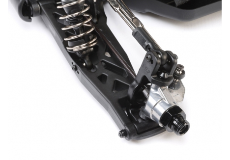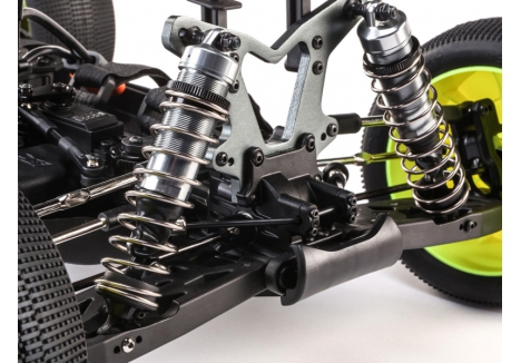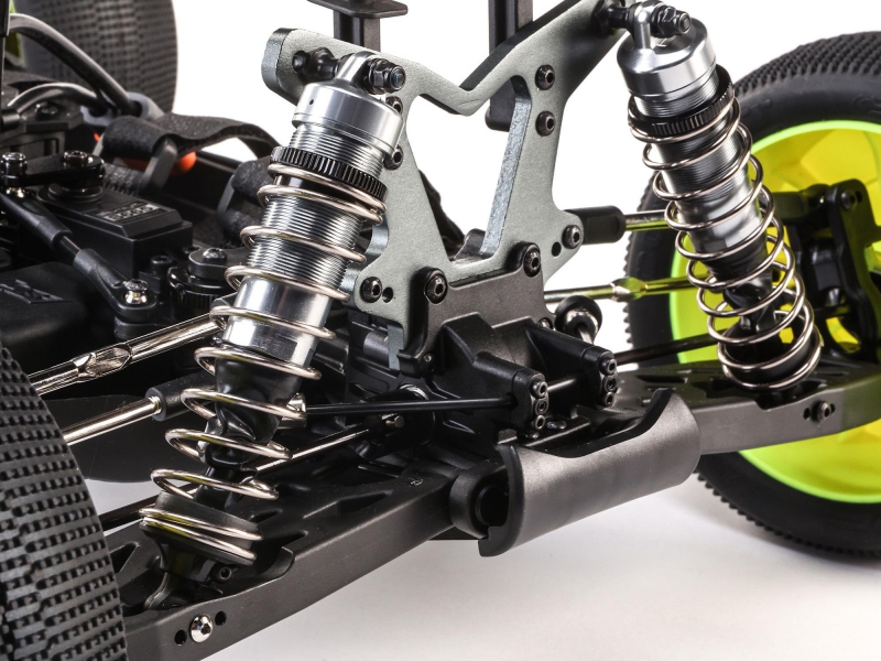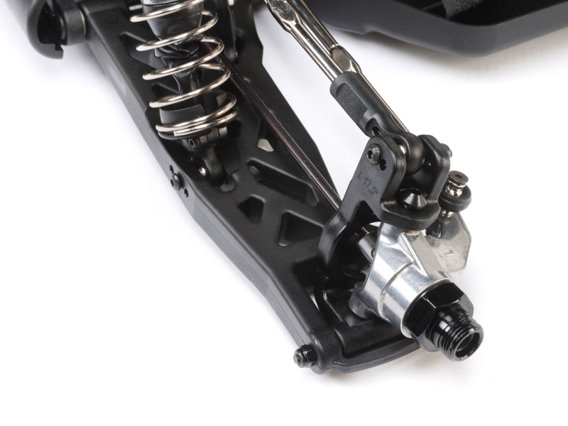 The suspension system of the Losi RC car with S665 servo and sealed differentials is built around aluminium oil-filled shocks pre-filled with 4,545 WT fluid. These threaded shocks allow for easy ride height adjustments and can be tuned with different springs and oils to match track conditions. Front and rear sway bars are standard, helping to keep the chassis level through corners and reducing body roll during aggressive maneuvers. This combination of damping and roll control ensures that the Losi C-LOS04020 brushless racing truggy maintains traction and responsiveness, even on uneven surfaces and during high-speed transitions.