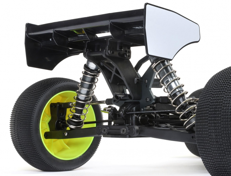 The 4mm thick aluminium chassis of the Losi racing truggy with aluminium chassis and oil-filled shocks provides a rigid and stable foundation for high-speed racing. Its extended wheelbase and wide stance contribute to improved balance and cornering stability, especially on rough terrain and during long mains. The chassis layout supports quick differential access for trackside tuning, while the integrated adjustable wing mount allows racers to fine-tune downforce based on surface conditions. Combined with aluminium shock towers and sway bars, the chassis architecture ensures the Losi C-LOS04020 4WD sensored truggy remains composed under pressure and adaptable to evolving track dynamics.