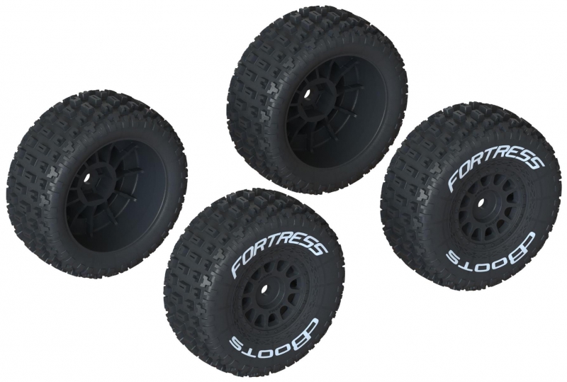 4 x Black wheels with pre-glued dBoots FORTRESS tires