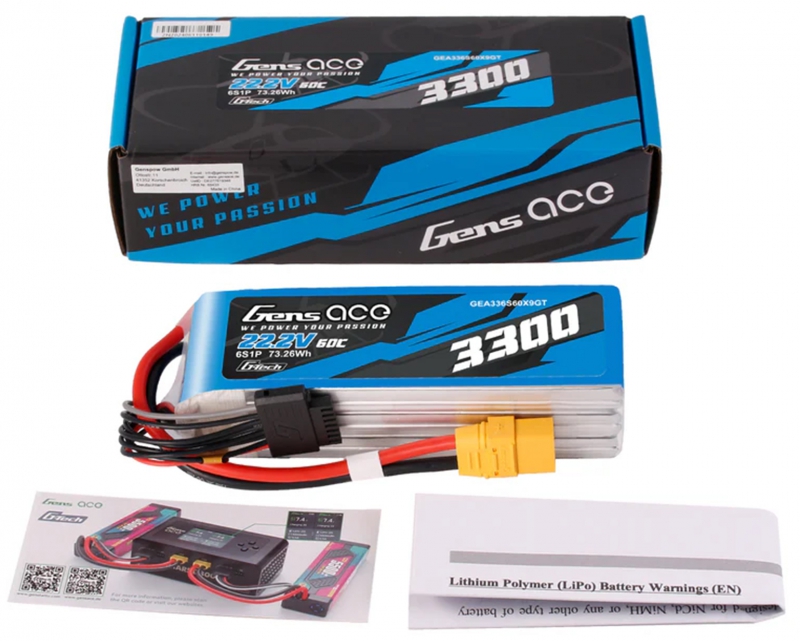 GENSACE Li-Po G-Tech 6S 22.2V 3300mAh 60C with XT90 O-GT6S3300-60X9