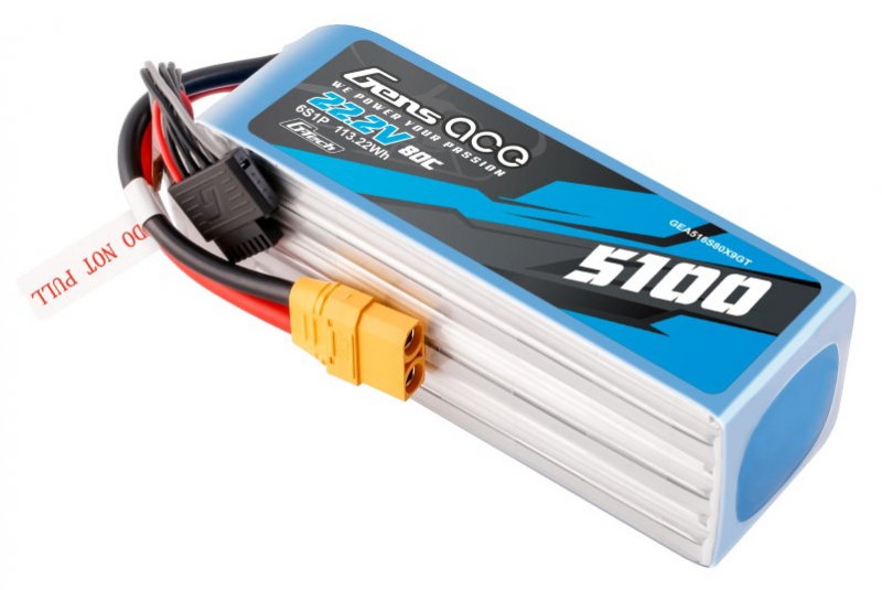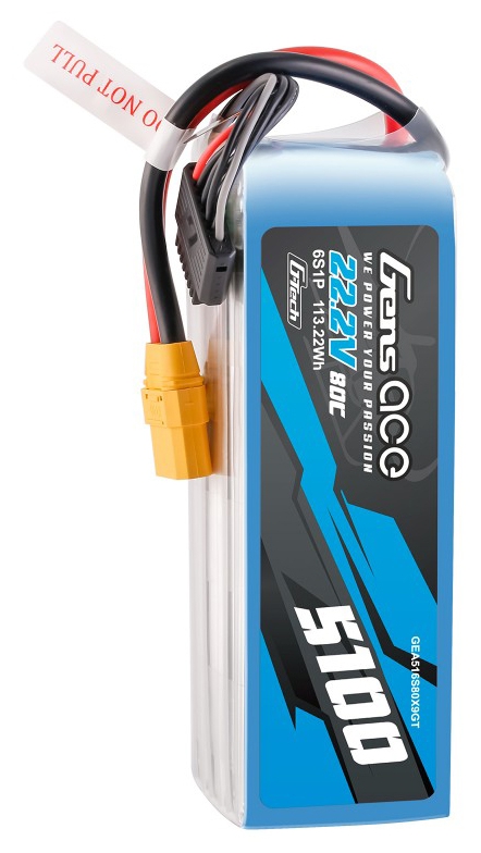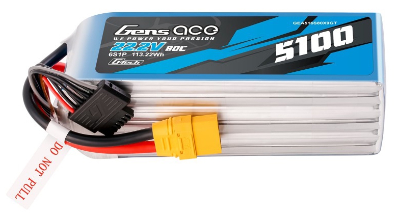 - (1) Gens Ace O-GT6S5100-80X9 6S HV 22.2V 5100mAh 80C Softcase LiPo Battery with XT90 Connector