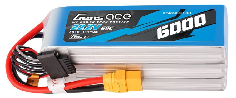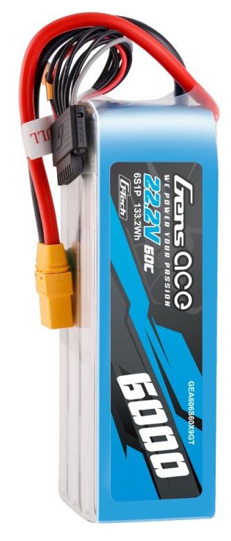 - (1) Gens Ace O-GT6S6000-60X9 6S HV 22.2V 6000mAh 60C Softcase LiPo Battery with XT90 Connector