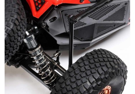 The Losi C-LOS04019 brushless desert buggy is built on a suspension platform derived from the championship-winning TLR 8IGHT. This independent suspension system offers true race geometry, allowing drivers to fine-tune camber, camber rate, toe, ride height, and shock angle. The aluminium-bodied adjustable shocks are mounted to robust aluminium shock towers, providing consistent damping and terrain absorption. Whether you're navigating high-speed desert straights or technical rock sections, the suspension setup ensures stability, control, and adaptability across varied surfaces. This level of tuning capability makes the Losi C-LOS04019 1/6 scale off-road RC car ideal for competitive and recreational use alike.