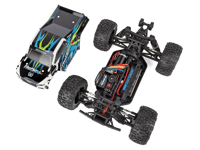 With all that power available at your disposal, you know this monster truck was designed with performance in mind. The versatility offered by the all-terrain tires, adjustable wheelie bar, turnbuckles, caster blocks and rear hubs make the Reflex 14MT ready for any terrain you can throw at it.