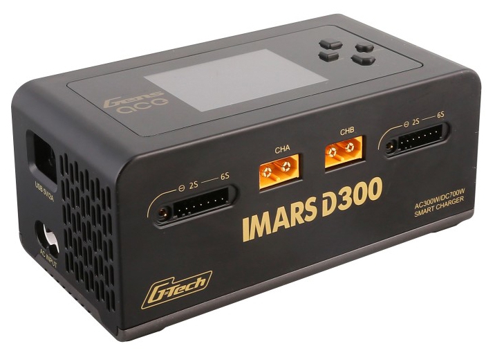 The GENSACE O-GAC300DUALGT iMars D300 charger with 300W AC / 700W DC dual output and 16A charge rate is a high-performance smart charger engineered for RC enthusiasts who demand speed, safety, and intelligent battery management. Designed for both G-Tech smart batteries and conventional packs, this dual-channel charger automatically detects battery type and optimal charge settings when paired with G-Tech cells. With seven operating modes, a wide-view IPS display, and advanced safety features, the iMars D300 delivers precision charging and versatile functionality in a compact, portable form. Whether you're balancing LiPo packs or powering external devices, this charger adapts to your workflow with seamless efficiency.