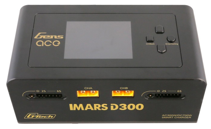 When the Gens Ace G-Tech battery is connected to the iMars D300 charger, the charger will automatically identify the battery type through the G-Tech Smart balance connector. The number of cells will be detected and the default charging current recommended by the battery manufacturer will be set. With all this data fed back to the charger it commences charging with these recommended settings ensuring the safe and efficient charging of the G-Tech battery. The iMars D300 is also fully capable of charging non G-Tech cells too thanks to the unique design of the G-Tech balance lead! You can connect a standard balance lead to the D300's balance port, however it is necessary to manually select the battery type and the required working mode to get it started. The charger can intelligently detect the cell count of the battery pack, and combined with the correctly selected battery technology will intelligently set the appropriate charge rate for the battery pack connected.