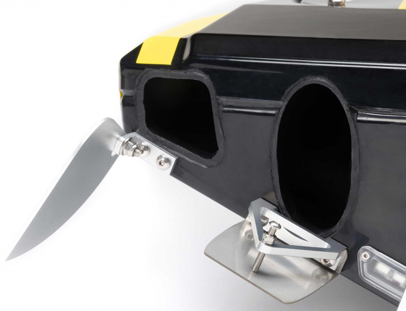 - Rudder: Breakaway offset rudder – rotates on impact to prevent damage