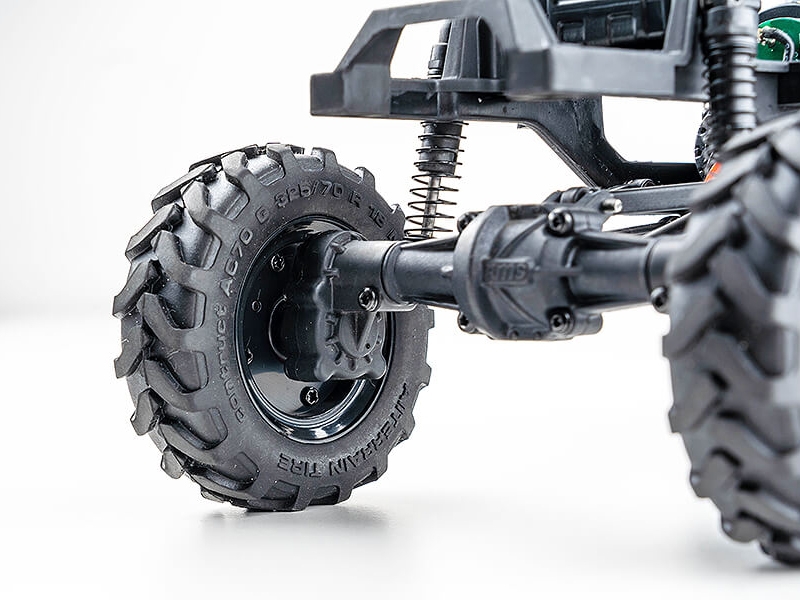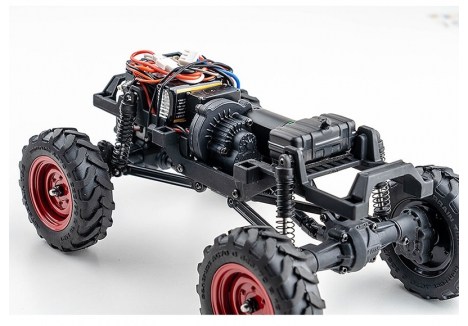 The crawlersare generally equipped with front and rear straight axles to simulate the locked state of the real car differential to improve off-road passing ability. The FCX24 is equipped with a straight axle by default, but the planetary gear differential can also be replaced with high-viscosity silicone oil to simulate the driving effect of an LSD limited-slip differential. After installing the differential, the ultimate climbing ability will be reduced, but a smaller turning radius and a more stable high-speed driving quality can be obtained. Simply put, the straight axle is suitable for extreme climbing, and the limited-slip differential is suitable for high-speed off-road. The choice is yours.
