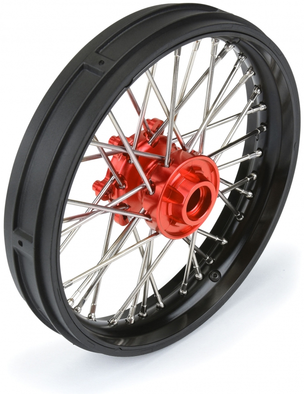 This is a Pre-Assembled Pro-Spec V2 Bead Aluminum Front Wheel for Losi® Promoto-MX. Pro-Line is taking motocross realism to the next level with this Pro-Spec anodized billet aluminum spoke wheel. Engineered for enthusiasts, this wheel is designed to perform in extreme environments while taking a beating.