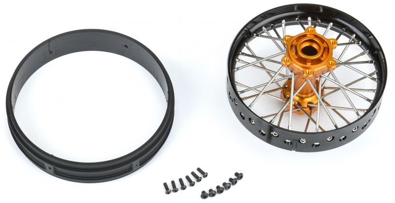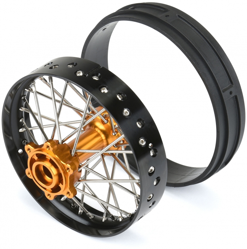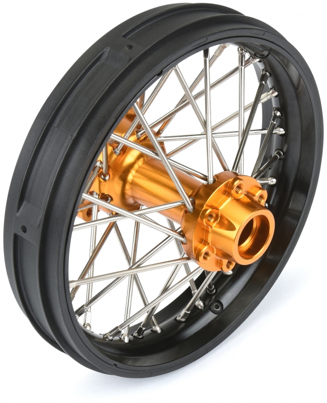 This is a Pre-Assembled Pro-Spec V2 Bead Aluminum Rear Wheel for Losi® Promoto-MX. Pro-Line is taking motocross realism to the next level with this Pro-Spec anodized billet aluminum spoke wheel. Engineered for enthusiasts, this wheel is designed to perform in extreme environments while taking a beating.