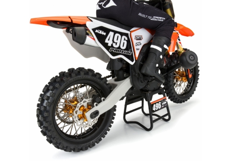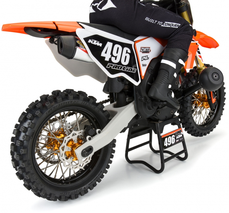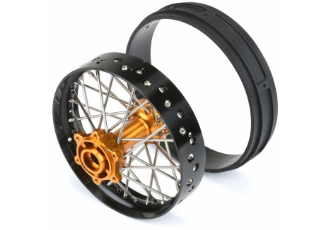 Just like full-size bikes, these wheels feature an anodized 6061 billet aluminum hub and rim with zinc-plated steel spokes that are factory-laced and precisely trued. Using the V2 Bead tire mounting sleeve, these wheels are easily mounted to your Pro-Line V2 Bead MX tires. The mounting sleeve provides a reliable glue bond to pre-mount tires and swap onto the Pro-Spec Aluminum Wheel.