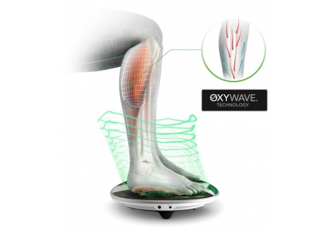 OxyWave is a proprietary EMS waveform used in the foot pads to contract and relax your calf muscles. These gentle contractions mimic walking, which helps pump blood back toward the heart, improving overall leg circulation. It’s clinically tested and designed for safe home use.