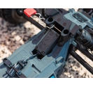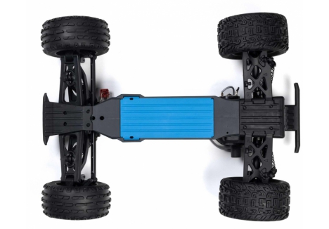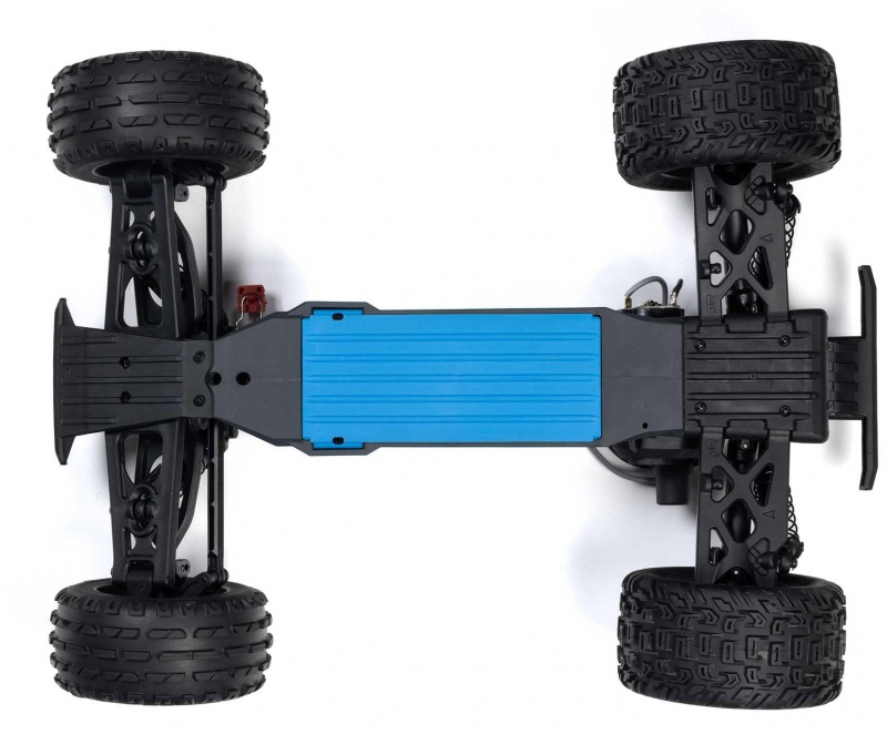One of the standout features of the ARRMA VORTEKS MEGA 550 blue truck with dBoots Dirtrunner ST tires and composite chassis is its bottom-loading battery tray. This design eliminates the need to remove the body or fumble with clips during battery changes. With a simple push of the latches, users can access the tray, swap out the battery, and return to action in seconds. This convenience is especially valuable during extended bashing sessions, where minimizing downtime enhances the overall experience. The tray accommodates both 7-cell NiMH and 2S LiPo batteries, giving users flexibility in power options as they progress. The IC3 connector ensures secure and efficient power delivery, while the tray’s placement maintains the truck’s low center of gravity for improved handling.