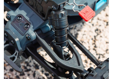 The C-ARA3205T1 stadium truck with waterproof ESC, S660 servo, and bottom-loading battery tray is equipped with independent suspension and oil-filled coilover shocks that absorb impacts and maintain traction over uneven surfaces. Users can adjust the ride height to increase ground clearance, allowing the stadium truck to tackle rough terrain with ease. This flexibility is particularly useful for backyard bashing, where conditions can vary from grass to gravel. The suspension system works in tandem with the dBoots Dirtrunner ST tires, whose specialized tread pattern provides grip and stability during cornering and jumping. Together, these components deliver a smooth and controlled ride that adapts to the environment.