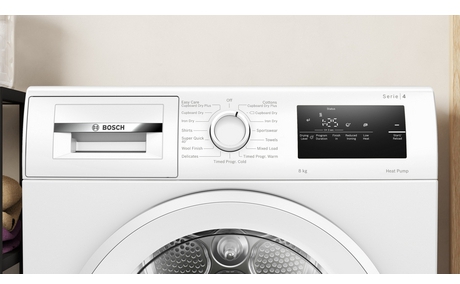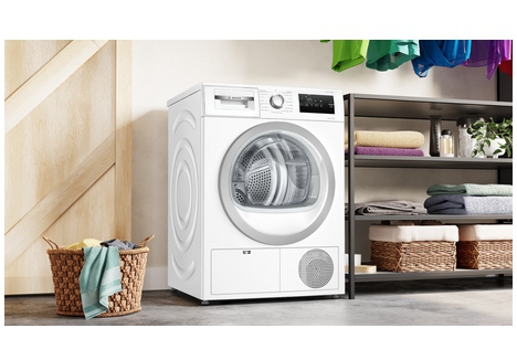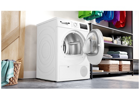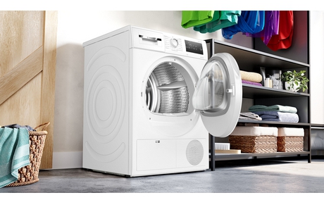 Equipped with Bosch’s AutoDry technology, this model automatically detects the moisture levels inside the drum and adjusts the cycle accordingly. Your laundry is dried to perfection without over-drying or shrinkage. It’s a core feature that makes the bosch tumble dryer with sensor drying ideal for everything from delicate garments to bulkier textiles like towels and bedding.