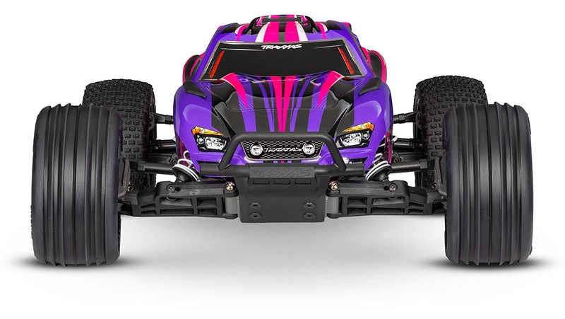 Traxxas Rustler® sits low and wide for maximum high-speed stability, with fast reflexes and an agile feel not found on other trucks.