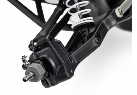 - Fibre-composite monocoque chassis – tall 4″ ground clearance for obstacle traversal and impact resistance