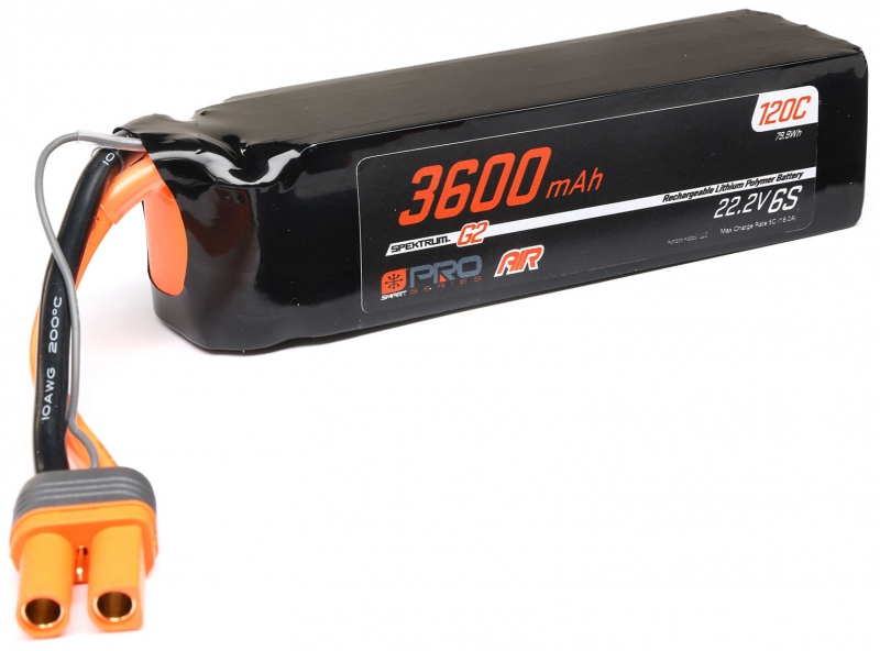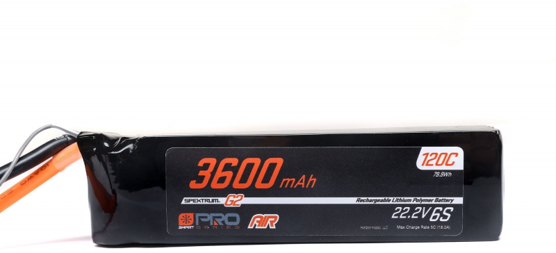 - (1) Spektrum O-SPMX-1069 22.2V 3600mAh 6S 120C Smart G2 Pro Air LiPo Battery with IC5 Connector