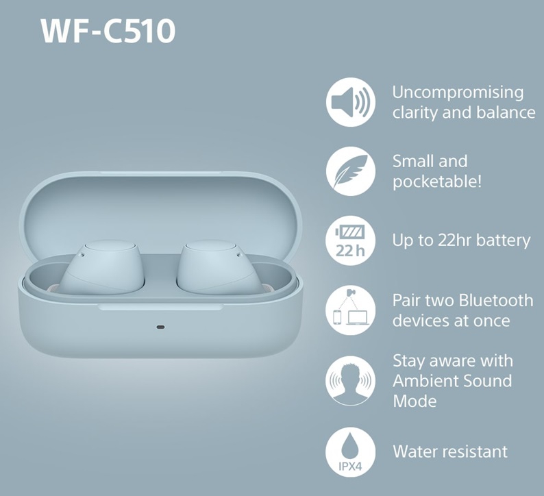 Key features of the Sony WFC510L.CE7 wireless headphones