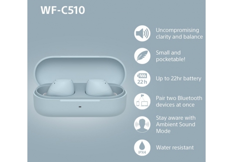 • Product Type: Sony WFC510L.CE7 wireless headphones, Sony WFC510L.CE7 in-ear headphones, Sony WFC510L.CE7 blue earbuds, Sony compact lightweight earbuds WFC510L.CE7, Sony headphones with DSEE WFC510L.CE7, Sony WFC510L.CE7 waterproof headphones