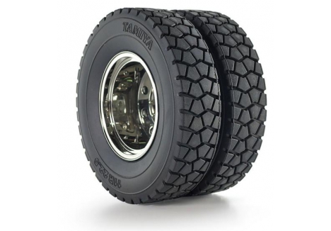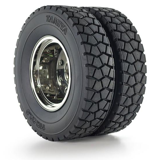 - A close-up of the dual rear tires, which are given realistic tread pattern for plenty of grip.
